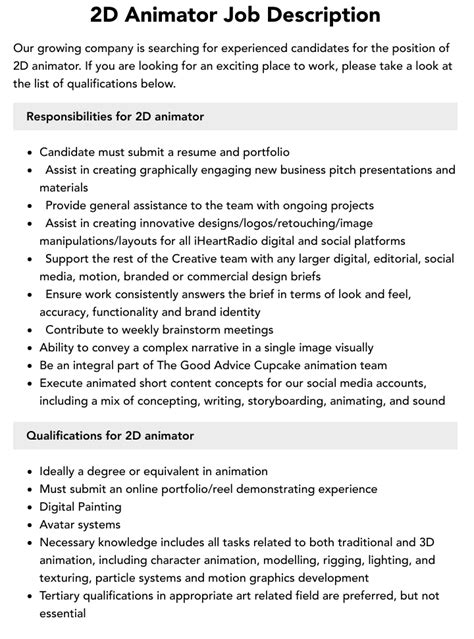 So there you have it, folks! A comprehensive look at the 2D animator job description . It’s a challenging but rewarding career for those who love to create and tell stories through animation. If you’re passionate about bringing characters and worlds to life, the role of a 2D animator could be the perfect fit for you. Good luck with your animation journey!