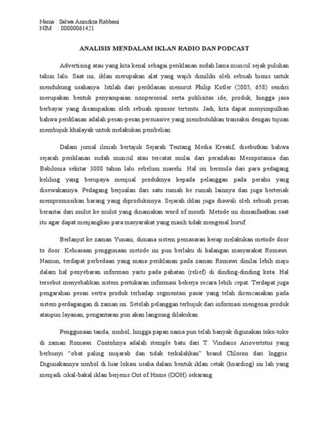 3. Iklan [Sebutkan Nama Produk] : Iklan ini menargetkan segmen pasar tertentu, yaitu [Sebutkan segmen pasar]. Iklan ini menampilkan testimoni dari pelanggan yang puas, sehingga berhasil membangun kepercayaan konsumen. Iklan ini juga menggunakan visual yang menarik dan narasi yang kuat, sehingga berhasil meningkatkan kesadaran merek dan penjualan.