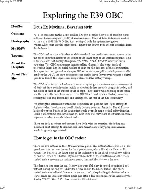 Now, let’s talk about the really exciting stuff: unlocking the hidden features and diagnostic capabilities of your OBC stalk . This is where things get a bit more advanced, guys, and it’s super satisfying when you figure it out. Many E46 owners discover that their OBC stalk can do more than just display basic trip information. It can actually access a secret menu that allows you to read Diagnostic Trouble Codes (DTCs) directly from your car’s computer. This is invaluable for troubleshooting those pesky check engine lights or understanding potential issues before they become major problems. The method to access this diagnostic menu typically involves a specific button combination. A common procedure is to press and hold the end button on the OBC stalk while turning the ignition key to the ‘on’ position (the position just before starting the engine). Keep holding the button until you see a new menu appear on your instrument cluster display, often starting with ‘TEST’ or a numerical code. From there, you can usually cycle through different test modules using the stalk’s buttons. Module 07 is often where you’ll find the DTCs. You’ll need to know the specific codes – these are usually 3-digit numbers – and what they mean. You can find extensive lists of these codes online or in your car’s service manual. Another hidden gem is the ability to check your car’s VIN (Vehicle Identification Number) and software version through the OBC. This can be handy for verifying your car’s original specifications or when ordering parts. Some people have even found ways to adjust certain settings, like the display contrast or the service interval reminders, though this varies greatly depending on the model year and specific options. Remember , when you’re playing around with these diagnostic menus, it’s crucial to be careful. Don’t go changing settings you don’t understand, as you could potentially cause issues. The goal is to gather information, not to reconfigure your car’s core systems without proper knowledge. It’s also a good idea to have a reliable source of information handy, like a forum thread or a repair manual, to guide you through the process and help you interpret the codes you find. This deeper dive into your E46’s OBC system not only gives you more control but also a greater appreciation for the engineering behind your car. It’s like having a mini mechanic right at your fingertips!