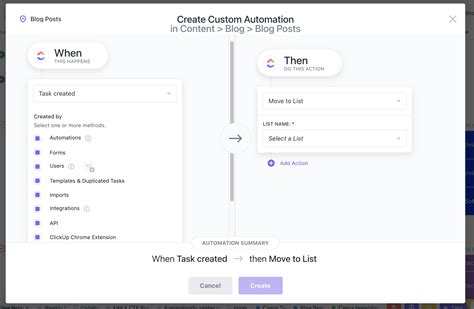 To get started with ClickUp automation, you’ll need to access the Automation settings within your workspace. This can typically be found in the settings menu or within a specific list or project. Once you’re in the Automation settings, you can create new rules from scratch or use pre-built templates to get started quickly. Each rule consists of a trigger and one or more actions. The trigger defines the event that initiates the automation, such as a task status change or a due date being reached. The action defines what happens when the trigger is activated, such as updating a task field or removing the task from a list. When setting up your automation rules, be sure to carefully consider the conditions that trigger the actions. You want to ensure that your automation runs only when it’s supposed to and doesn’t inadvertently affect other tasks or lists. With a little planning and experimentation, you can create powerful automations that transform the way you work in ClickUp.