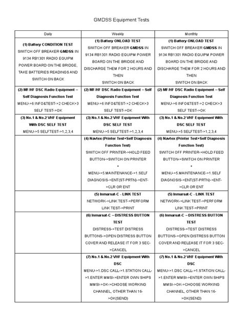Alright, let’s nail down the frequency for GMDSS equipment testing . The rules are pretty clear, guys, and it’s not a ‘whenever I feel like it’ kind of deal. Regulatory bodies like the IMO, flag states, and classification societies have specific intervals you need to adhere to. Generally, routine operational testing of the main GMDSS components should be performed daily by the watchkeeping officer or a qualified crew member. This includes things like checking power supplies, ensuring equipment is switched on, and performing any available self-tests on devices like the EPIRB or SART (remember, these self-tests don’t transmit distress signals). Then there are monthly tests . These are typically more in-depth and might include testing the DSC functions on VHF and MF/HF equipment by making test calls to shore stations. You’ll also check the batteries of your portable equipment, like handheld VHFs and SARTs, and ensure they are charged and within their expiry dates. Annually , a more comprehensive inspection and testing by a qualified technician or shore-based maintenance provider is usually required. This is when they’ll perform detailed checks, calibrate equipment if necessary, and verify that everything meets the stringent performance standards. Some components, like EPIRB batteries and hydrostatic release units, have specific replacement schedules – usually every 5 years for batteries and 2 years for HRUs, but always check the manufacturer’s recommendations and regulatory requirements for your specific equipment and flag state. Ignoring these testing schedules is a major compliance risk and, more importantly, a serious safety hazard. It’s like saying you’ll only check your fire extinguishers when there’s a fire. Stay organized, keep logs, and stick to the schedule, guys!