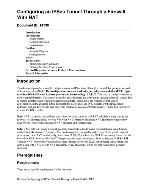 • Firewall Rules : Firewalls between the IPsec peers must allow UDP ports 500 (for IKE) and 4500 (for NAT-T), as well as the IP protocols for AH (IP protocol 51) and ESP (IP protocol 50). Double-check that these necessary ports and protocols are open.