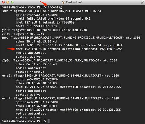 Look for the line that starts with inet . The numbers following inet are your private IP address on your local network (e.g., 192.168.1.100 ). If en0 doesn’t seem to show an IP, try en1 or check your System Settings to see which network interface is active and what it’s called. For Wi-Fi, it’s most commonly en0 or en1 .
