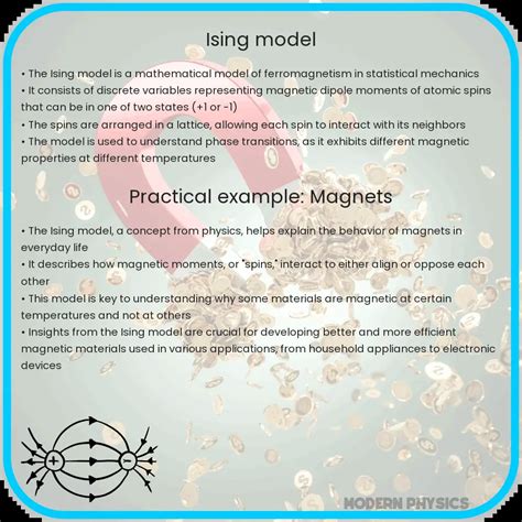 Researchers are constantly pushing the boundaries by developing extensions and variations of the Ising model. This includes exploring higher-dimensional lattices, introducing more complex interaction rules (beyond just nearest neighbors), incorporating frustration (where not all interactions can be simultaneously satisfied), or allowing for more than two spin states (like the Potts model, which is a generalization). These extensions allow us to model increasingly complex systems, from quantum materials and topological phases of matter to sophisticated biological networks and artificial intelligence algorithms. The Ising model serves as a fundamental building block, and by modifying its components, we can construct models that better represent the intricate realities of the systems we study. The drive is to capture more nuanced behaviors and phenomena that the basic model cannot address, opening up new avenues for theoretical and experimental research.