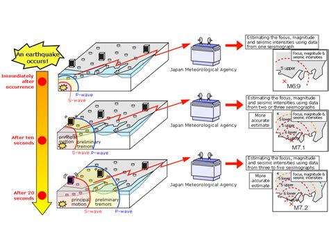 Okay, so let’s break down the Japan Earthquake Early Warning System . Basically, it’s a network of seismographs strategically placed all over the country. These seismographs are super sensitive instruments that detect the initial seismic waves, called P-waves, that travel faster than the more destructive S-waves that cause the ground to shake. The system’s job is to quickly analyze the P-wave data to estimate the earthquake’s location, magnitude, and the expected intensity of shaking at different locations. This information is then used to send out warnings to the public. Think of it like a race: the P-waves are the runners, and the S-waves are the main event, and the EEW system is the announcer giving everyone a heads-up about what’s about to happen.