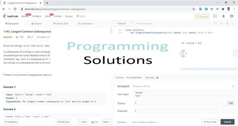 And there you have it! We’ve successfully tackled the Longest Common Subsequence problem on LeetCode using Python and dynamic programming. We walked through the problem statement, developed a clear understanding of the dynamic programming approach, implemented the solution in Python with detailed comments, and analyzed the time and space complexity. Remember, practice makes perfect, so try implementing this solution yourself and experimenting with different variations of the problem. Good luck, and happy coding!
