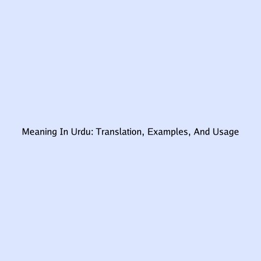 Meaning In Urdu: Translation, Examples, And Usage