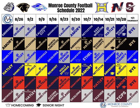 • Monroe High School Website: The official school website is usually the most up-to-date and accurate source for the Monroe football schedule . Look for the Athletics or Sports section on the website’s main navigation menu. There, you should be able to find the schedule in an easily readable format, often as a PDF document or an interactive calendar.