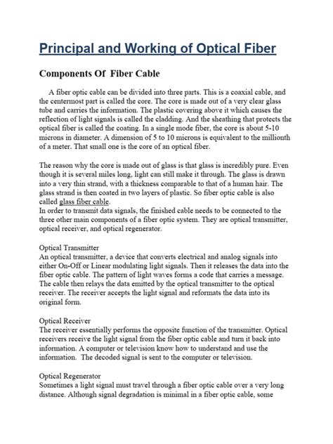 Hey guys, ever wondered how those super-fast internet connections actually work ? It all boils down to something really cool called optical fiber . If you’ve ever seen those thin, glass-like strands, you’re looking at the backbone of modern communication. Today, we’re diving deep into the working principles of optical fiber , breaking down the science behind how light travels through these tiny tubes to bring you everything from streaming movies to online gaming. It’s not magic, folks, it’s physics, and it’s pretty darn fascinating!
