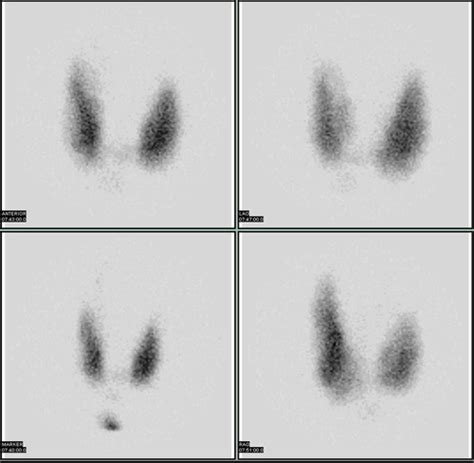 • Toxic Nodular Goiter: This condition involves one or more nodules (lumps) in the thyroid that are overproducing thyroid hormone. The scan might show areas of high uptake in the nodules, with the rest of the gland appearing normal or suppressed.