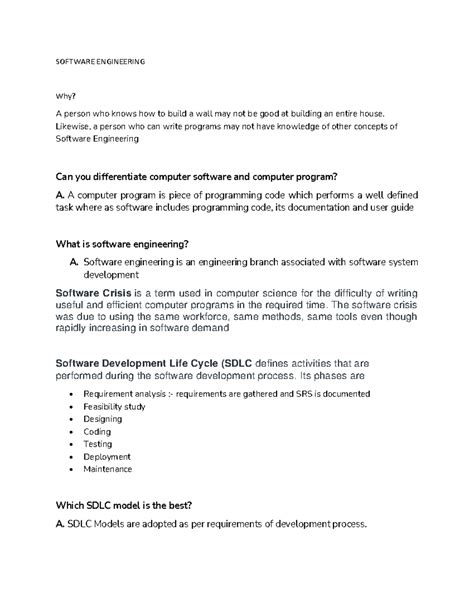 Let’s talk about the Software Development Lifecycle (SDLC) , guys. This is like the roadmap that software engineers follow to create software from start to finish. It’s a structured process designed to ensure that the final product is high-quality, reliable, and meets all the user’s needs. Think of it as a project management framework that breaks down the entire software creation process into distinct phases. The first phase is typically Planning and Requirements Analysis . This is where the whole journey begins. The team gathers all the necessary requirements from the client or stakeholders. What problem are we trying to solve? What features should the software have? What are the constraints? This phase is crucial because getting the requirements wrong can lead to building the wrong product, which is a huge waste of time and resources. After requirements are clear, we move into Defining and Designing . In this phase, based on the gathered requirements, the system architecture and technical design are laid out. This involves defining the overall structure, the databases, the user interface (UI), and the user experience (UX). It’s like creating the detailed blueprints for our software skyscraper. Then comes the Implementation or Coding phase. This is where the actual coding happens. Developers write code based on the design specifications, using programming languages and tools they’ve learned. This is often the most time-consuming phase, where the software starts taking shape. Once the code is written, it needs to be Tested . The testing phase is critical for ensuring the software is free of bugs and works as expected. Various types of testing are performed, including unit testing, integration testing, system testing, and user acceptance testing (UAT), to catch any issues before deployment. After successful testing, the software moves into the Deployment phase. This is when the software is released to the end-users or integrated into the existing systems. It could be as simple as uploading an app to an app store or as complex as rolling out a new enterprise system across an organization. Finally, there’s Maintenance . Software isn’t a ‘set it and forget it’ thing. Once deployed, it needs ongoing support. This phase involves fixing any bugs that pop up in production, making updates, and adding new features based on user feedback or changing business needs. The SDLC isn’t always a linear process; methodologies like Agile embrace iterative development, where these phases might be revisited multiple times in shorter cycles. Understanding the SDLC is fundamental for any aspiring software engineer because it provides a systematic approach to building complex software, ensuring quality, efficiency, and client satisfaction throughout the entire project lifecycle. It’s the blueprint for turning an idea into a working, valuable product.