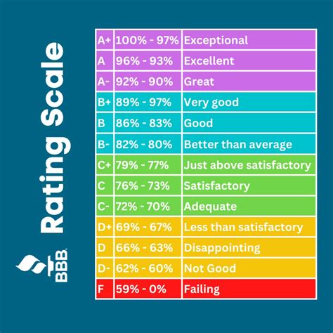 Okay, now let’s talk about the ratings themselves. What do those letter grades actually mean? The BBB assigns ratings from A+ (the best) to F (the worst). These ratings are based on a complex algorithm that takes into account a variety of factors. It’s not just about whether a business has complaints; it’s about how they handle those complaints, their transparency, and their overall business practices. Think of it like a report card for businesses, but instead of grades in math and science, it’s grades in trustworthiness and customer service.