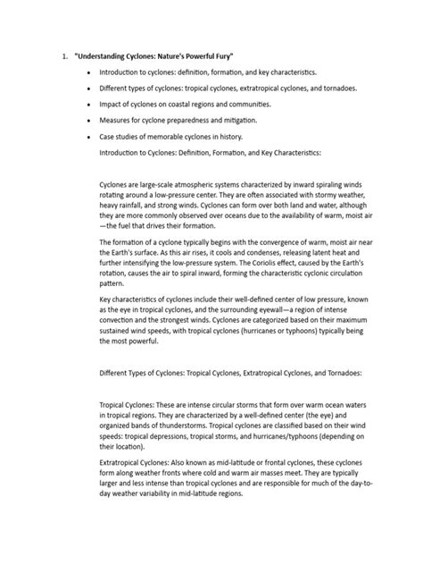 Now, let’s move on to the actual power of these storms. The winds, of course, can be insanely strong, capable of downing trees, damaging buildings, and causing widespread destruction. Then there’s the rain. These storms can dump several inches of rainfall, leading to flooding, which can wash away homes and infrastructure. Finally, we have the storm surge, which is the rise in sea level caused by the storm’s winds pushing water towards the coast. This surge can be incredibly destructive, inundating coastal areas with water and causing significant damage. The impact of a cyclone depends on various factors, including its intensity, size, the terrain it crosses, and the preparedness of the affected area. When a cyclone makes landfall, it’s not just the immediate impact that’s a problem; there are often long-term consequences, like displacement of people, damage to ecosystems, and economic losses. So, yeah, cyclones are a big deal. They need to be taken seriously and it’s important to understand what they are.