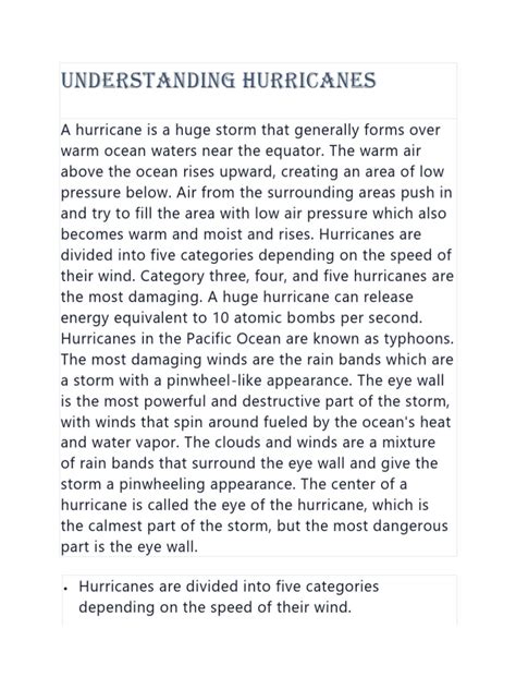 So, what are the key components of these storms? First, you have the eye, the calm center of the hurricane. Then, surrounding the eye, you have the eyewall, the area of strongest winds and heaviest rainfall. Outside the eyewall are rainbands, spiral arms of thunderstorms that can extend hundreds of miles from the center. Finally, a hurricane’s intensity is measured using the Saffir-Simpson Hurricane Wind Scale, which categorizes storms based on sustained wind speeds. Knowledge of these elements is important in understanding what happens when a hurricane forms. The study of hurricanes is important, and learning the terminology will help you understand more about them. Therefore, learning the basic components of hurricanes is essential to appreciating their complexity and the challenges of studying and forecasting them.