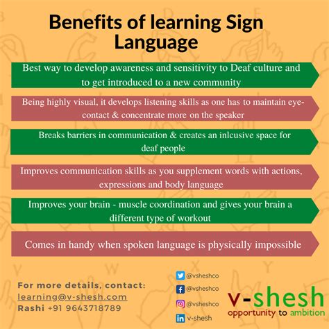 So, why bother learning sign language ? It’s not just about learning a new skill; it’s about unlocking a whole new perspective. One of the biggest perks is the ability to communicate directly with people who are Deaf or hard of hearing. Imagine being able to have a real conversation without needing an interpreter! This direct connection is super valuable, building bridges and fostering understanding. Plus, learning sign language is an amazing workout for your brain. Studies show it can boost cognitive function, improving memory and enhancing your ability to focus. It’s like a mental gym session! Also, knowing sign language can open up career possibilities. From becoming an interpreter to working in education or healthcare, the demand for sign language skills is growing. It’s a skill that’s in demand, making you a valuable asset in many fields. Beyond the practical, learning sign language connects you to a vibrant culture. You’ll gain insights into the Deaf community, its history, and its unique ways of life. This cultural immersion is enriching and eye-opening. You’ll gain a deeper appreciation for diversity and inclusion. And let’s not forget the personal satisfaction. Learning a new language is always rewarding. It boosts your confidence and gives you a sense of accomplishment. It’s a fun, engaging, and fulfilling experience. Trust me, guys, it’s worth it.