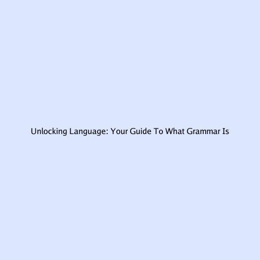 Unlocking Language: Your Guide to What Grammar Is
